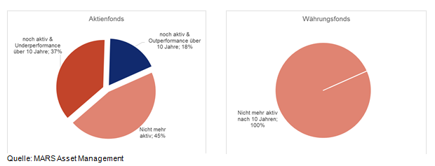 Aktienfonds und Währungsfonds, die nach zehn Jahren nicht mehr aktiv sind