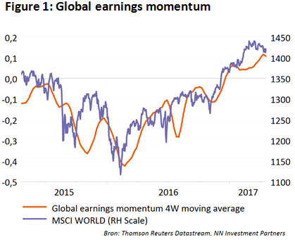 Now, with the French election bomb largely being defused, investors should refocus on the economic and corporate fundamentals and leave the political analysis – and without any doubt interesting conclusions of what has happened in France – to the political experts. Global earnings momentum remains strong and is positive across all regions. Global equities have followed the trend.