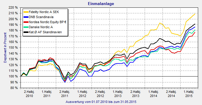 Beide Fonds konnten im laufenden Jahr aber mehr zulegen als Fidelity Nordic: Der Danske Nordic erwirtschaftet 15,9 Prozent, der DNB Scandinavia legt knapp 18 Prozent in 2015 zu. Beide Fonds weisen zudem eine geringere Volatilität als der Fidelity Nordic A auf, sie liegt unter 11,3 Prozent. Auch der maximale Drawdown liegt bei beiden Fonds unter 6,5 Prozent.