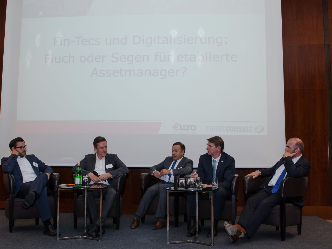 Auch die anschließende Podiumsdiskussion unter dem Motto „Fintechs und Digitalisierung: Fluch oder Segen für etablierte Assetmanager“ unter der Moderation von EAS-Geschäftsführer Dieter Fischer bat reichlich Stoff zum Nachdenken: „Die Finanzindustrie macht es den Menschen nicht leicht. Viele Themen und Prozesse sind nur schwer zu verstehen oder nachzuvollziehen“, bemängelt beispielsweise Markus Jordan, Gründer des Fintech-Unternehmens easyfolio. Fintechs dagegen haben es sich zum Ziel gemacht, den Anleger schnell und einfach über Finanzthemen zu informieren und aufzuklären. So könnten Interessierte ihre Finanzentscheidungen selbstständig treffen. Friedger Stiasny, Head of Marketing Germany/Austria des Vermögensverwalters Schroders, sieht in der Digitalisierung vor allem Vorteile: „Wir können Marketing-Aktivitäten genauer messen sowie Performance-basiert, endkundengerecht und transparenter arbeiten.“ Für Andreas Grünewald, Vorstandsvorsitzender VuV, ist jedoch klar, dass keine persönliche Anlageberatung auch keine Lösung sein kann. Dass es für Vermögensverwalter jedoch notwendig sein wird, sich der Digitalisierungswelle anzupassen und nachzubessern, da sind sich alle einig.