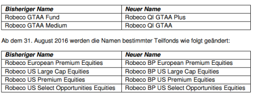Ab dem 15. August 2016 werden die Namen bestimmter Teilfonds wie folgt geändert