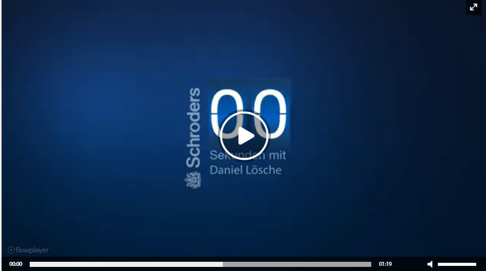 Die hierin geäußerten Ansichten und Meinungen stammen von Daniel Lösche, Investmentanalyst bei Schroders Frankfurt. Sie stellen nicht notwendigerweise die in anderen Mitteilungen, Strategien oder Fonds von Schroders oder anderen Marktteilnehmern ausgedrückten oder aufgeführten Ansichten dar.