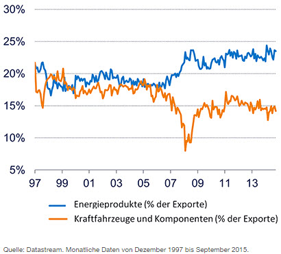 Abbildung 3: Kanadische Energie- und Automobilexporte (% der Gesamtausfuhren)