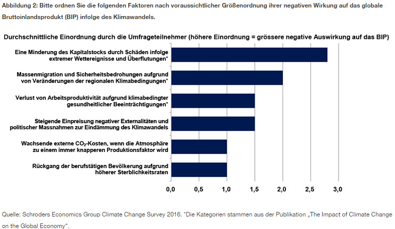 An dieser Stelle bedanken wir uns noch einmal bei allen Teilnehmern der Befragung. Die detaillierten Antworten vieler Befragten gaben nützliche Einblicke in ein Thema, das zum Nachdenken anregt und sicher in naher Zukunft noch stärkere Bedeutung erlangt. Wir gehen davon aus, dass die Suche nach Lösungen verstärkt werden wird, wenn die konkrete Bedrohung für die Weltwirtschaft durch den Klimawandel zunimmt.