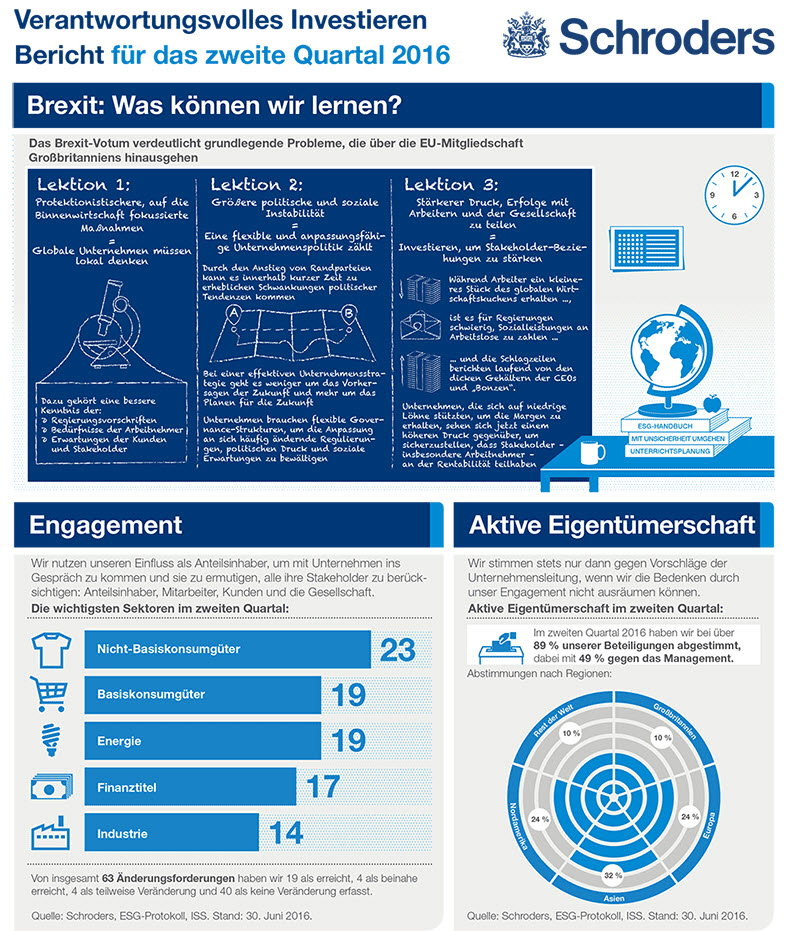 Im Responsible Investment Report für das zweite Quartal 2016 und der dazugehörigen Infografik stellen sich Schroders-Experten die Frage, was wir aus dem Brexit für verantwortliches Investieren lernen können.