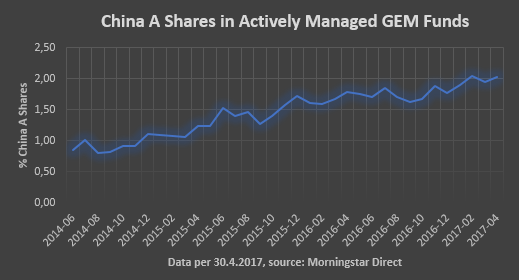Die Entwicklung der China-A-Quote in Schwellenländer-Fonds seit 2014