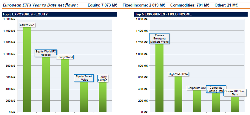 Bei Aktien-ETFs haben sich die seit Ende 2016 abzeichnenden Trends verstetigt: US-Aktien verzeichneten mit Zuflüssen von 1,9 Milliarden Euro einen starken Jahresbeginn. Hintergrund sind die guten volkswirtschaftlichen Rahmendaten für die USA und das positive Wirtschaftsklima infolge der US-Wahl. Zudem flossen ETFs auf globale Aktien im Monatsverlauf 1,8 Milliarden Euro und ETFs auf europäische Aktien 508 Millionen Euro zu.