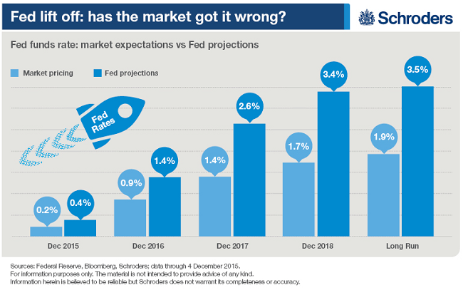 With over 80% of the market now expecting the Fed to hike rates by 25 bps at their December meeting, investors appear increasingly confident that a tightening cycle will be initiated next week.However, investors still expect a low interest rate environment to continue, not just in absolute terms, but also relative to the Fed’s own expectations.