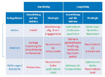 Anleger sollten also gut vorbereitet sein: Kurzfristig wird sich die Volatilität fortsetzen, weshalb eine Absicherung breit gestreuter Anlagen in Aktien geboten ist und gegebenenfalls ein Rückzug in sichere Häfen wie Gold erwogen werden sollte. Die lang erwartete Anhebung der Leitzinsen wird möglicherweise erst einmal zurückgestellt, so dass US Treasuries attraktiver werden könnten. Längerfristig dürften US-Aktien aus unserer Sicht wieder an Anziehungskraft gewinnen.