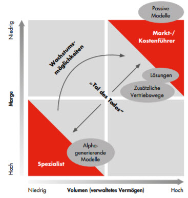 Obgleich der Anlagebedarf steigt, wird die Luft für den Großteil der Fondsgesellschaften in Zukunft dünner. Überleben werden im Markt nur Kostenführer oder Spezialisten, sagt eine neue Studie.