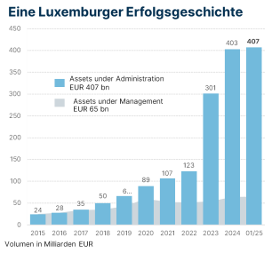 Durch die Übernahme des Fondsadministrators UI efa im Jahr 2022 wurde die Rolle Luxemburgs zusätzlich gestärkt. Das Land ist heute neben Deutschland und Irland der dritte Fondsstandort der Gruppe in Europa.