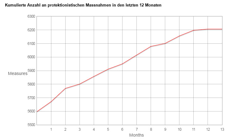 Kumulierte Anzahl an protektionistischen Massnahmen in den letzten 12 Monaten