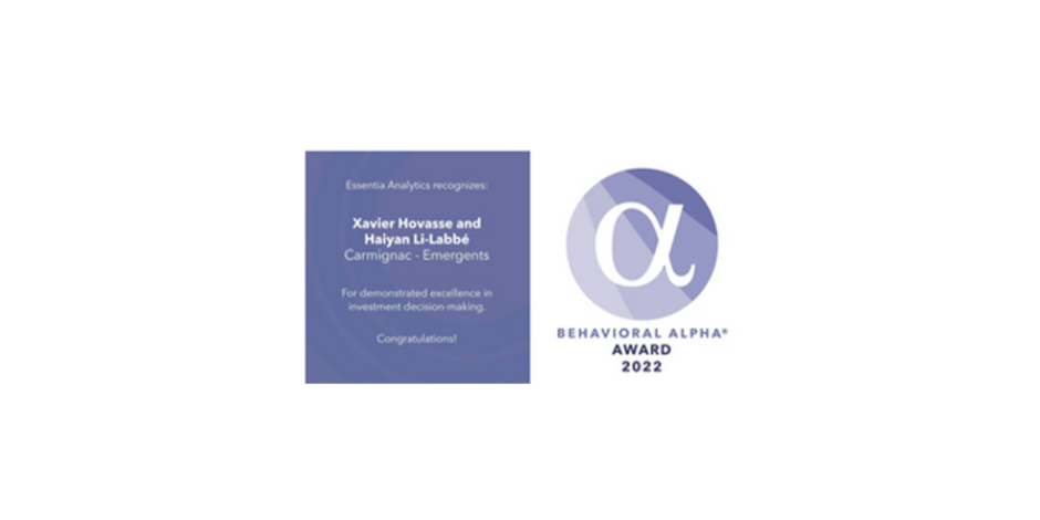 Wir sind sehr stolz darauf, dass Xavier Hovasse, Head of Emerging Equities, und unsere Fondsmanagerin Haiyan Li-Labbé für Ihre Verwaltung des Carmignac Emergents den Behavioural Award 2022 erhalten haben.