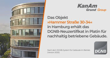 Das Objekt »Hammer Straße 30-34« in Hamburg hat im Zuge einer DGNB-Neuzertifizierung den Platin Standard1) und damit die höchste Auszeichnung der Deutschen Gesellschaft für Nachhaltiges Bauen (DGNB) erhalten.