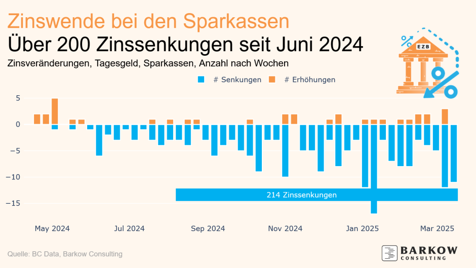 Wie die öffentlichen Finanzinstitute auf die Leitzinssenkung der Europäischen Zentralbank reagiert haben, berichtet das Analysehaus Barkow Consulting.