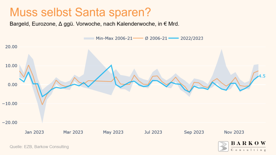 So auch in diesem Jahr: In der Woche vor dem 8. Dezember stieg der Bargeldumlauf im Euroraum um 4,5 Milliarden Euro und in Deutschland um 1,7 Milliarden Euro.