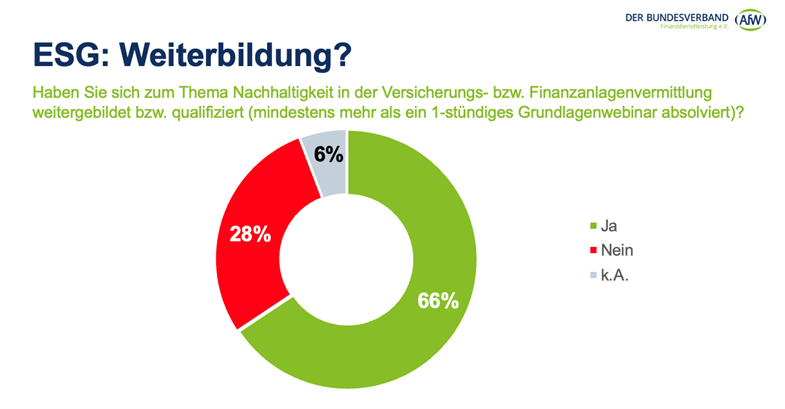 „Wir begrüßen die zunehmende Vielzahl der qualifizierten ESG-Weiterbildungen in der Branche. Der AfW engagiert sich selbst aktiv an der Vermittlung von Fachwissen. Wir haben etwa bei den Leitlinien zur Abfrage der Nachhaltigkeitspräferenzen des Forum Nachhaltige Geldanlagen e. V. (FNG) und des Arbeitskreis Beratungsprozesse e. V. mitgewirkt und gemeinsam mit Votum eine einfach verständliche Hilfestellung zur Offenlegungsverordnung verfasst“, so Wirth. Weitere Informationen dazu finden Vermittlerinnen und Vermittler auf der Webseite des AfW. (jk)