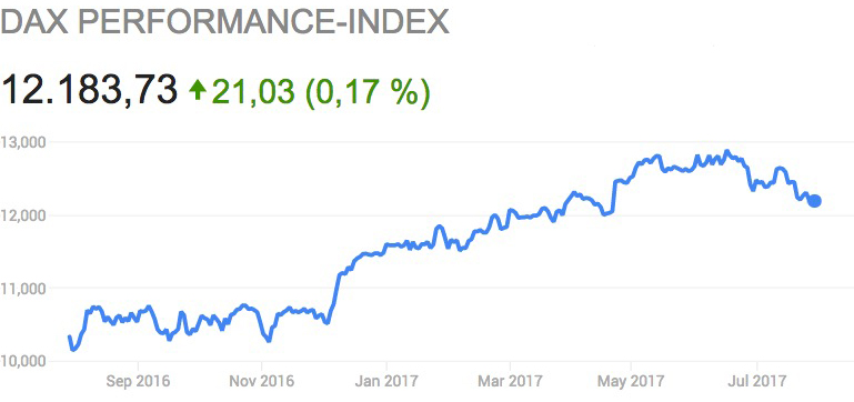 Seit dem Höchststand im Juni hat der DAX wieder fünf Prozent abgeben müssen. Quelle: Google
