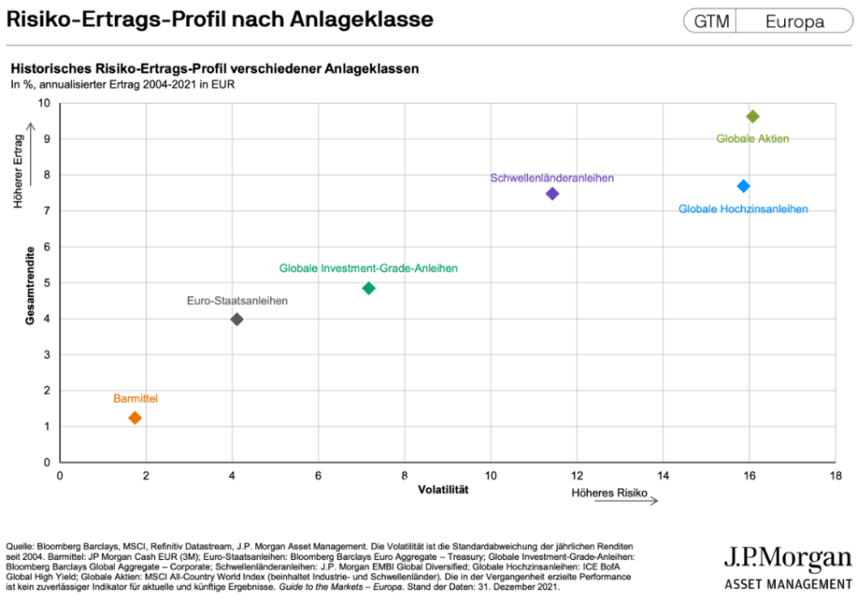 Die Erkenntnis: Anlagen mit geringeren Risiken hätten in der Vergangenheit auch tendenziell niedrigere Renditen eingebracht. Im Umkehrschluss bedeute dies: Wer vergleichsweise hohe Renditen erzielen wolle, sollte sich bewusst sein, dass man auf dem Weg dorthin eventuell auch größere Schwankungen in Kauf nehmen muss.