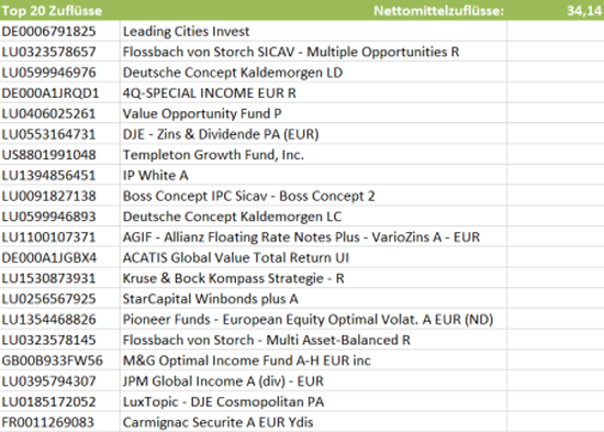 Die Netfonds AG hat ihr monatlich erscheinendes Verkaufsbarometer heraus gegeben.Nach Angaben des Finanzberaters aus Hamburg zählte im März der mit dem KanAM Leading Cities Invest (ISIN: DE0006791825) ein Immobilienfonds zu den beliebtesten Produkten. Ein Mischfonds aus dem Hause FvS Invest, der Flossbach von Storch SICAV – Multiple Opportunities steht auf Rang zwei der Liste. Auf Rang drei platziert der von der Deutschen AM verwaltete Deutsche Concept Kaldemorgen (ISIN: LU0599946976).