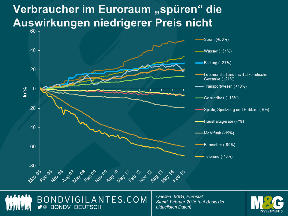 Momentan werden die Notenbanker weltweit vom Schreckgespenst der Deflation heimgesucht, obwohl sich viele von uns wahrscheinlich die Frage stellen, ob die Auswirkungen sinkender Preise tatsächlich in der Realwirtschaft – und insbesondere in den Brieftaschen der Verbraucher – spürbar sind.