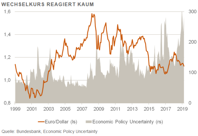 Dabei haben sich die Unsicherheiten, denen die Märkte ausgesetzt waren, keineswegs verringert. Sie sind vielmehr insbesondere seit 2014 deutlich gestiegen. Siehe die Erhöhung des "Economic Policy Uncertainty Index" in der Grafik. Andere Teile der Finanzmärkte wie etwa Aktien oder Bonds haben darauf erheblich reagiert. Der Volatilitätsindex VDAX-NEW hat sich zeitweise nahezu verdoppelt. Die Devisenmärkte verharrten dagegen fast in einer Art "Friedhofsruhe".