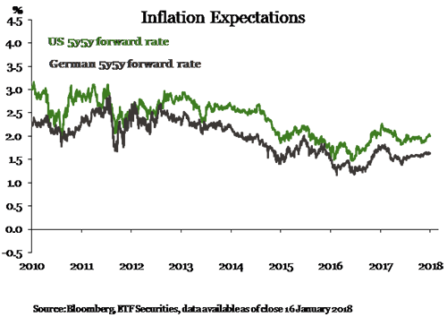 Folglich sind wir der Ansicht, dass die Anleger den möglichen Aufbau von Inflationsdruck in den USA und damit auch die Notwendigkeit der drei für 2018 prognostizierten Zinsanhebungen zu schnell diskontiert haben.