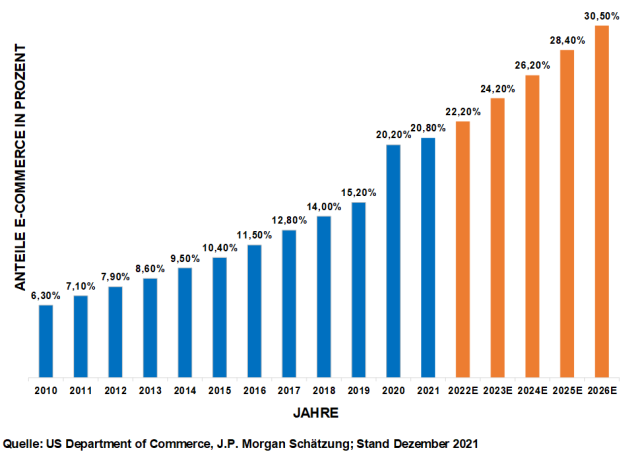 Der Online-Handel erlebte durch die Corona-Pandemie einen enormen Schub. Mit der Rückkehr von mehr Normalität dürfte sich dieses Wachstum zwar abschwächen. Der strukturelle Trend bleibt aber intakt.