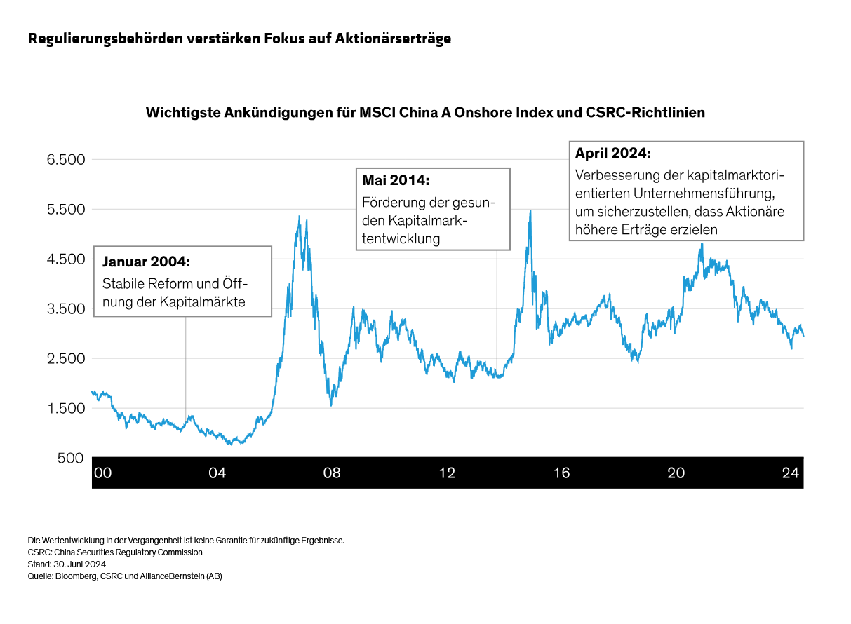 Die Entwicklung des chinesischen Aktienmarktes ist in vollem Gange. Die Regulierungsbehörden ermutigen Unternehmen, sich darauf zu konzentrieren, Erträge für die Aktionäre zu erzielen. Und die sich ändernden makroökonomischen Bedingungen erleichtern es chinesischen Unternehmen, Dividenden auszuschütten. Zusammengenommen glauben wir, dass diese beiden Trends den Weg für eine neue Phase ebnen, in der chinesische Dividendenzahler vom Markt belohnt werden und so ein positiver Kreislauf für Anleger entsteht.
