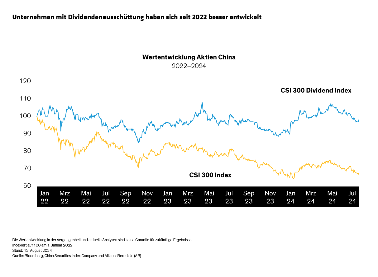 Dieser Trend erklärt auch, warum chinesische Substanzwerte besser abgeschnitten haben als Wachstumstitel. Seit Anfang 2022 hat der MSCI China A-Share Value Index, der einen höheren Anteil an Dividendenzahlern aufweist, den MSCI China A-Share Growth Index um 38 % übertroffen.