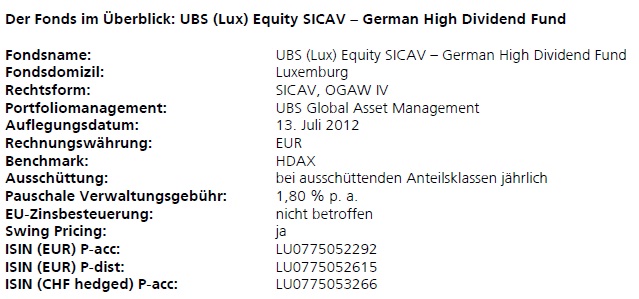 UBS Global Asset Management startet einen neuen Fonds, der gezielt in Aktien deutscher Unternehmen investiert, die eine hohe Dividende ausschütten.