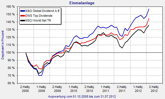 "Auf der Suche nach attraktiven und stabilen Renditen in einem anhaltenden Niedrigzinsumfeld sind mehr und mehr Investoren in den letzten Jahren auf dividendenstarke Aktien bzw. Dividendenfonds aufmerksam geworden. In der Folge haben sich natürlich auch die Bewertungen deutlich erhöht. Legg Mason hat dies jetzt für den US-Markt untersucht. Demnach notieren die 100 Aktien mit der höchsten Dividendenrendite (Median: 4,08%) aktuell mit einem KGV von 14,36. Gleichzeitig beträgt deren Dividendenwachstumsrate über die letzten fünf Jahre im Median aber nur 5,39%. Auf der anderen Seite notieren die 100 Aktien mit den höchsten Dividendenwachstumsraten (Median: 20,34%) nur mit einem KGV von 12,96. Dass die Dividendenrendite mit 2,32% im Median vergleichsweise bescheiden ausfällt, erklärt, warum diese Aktien von risikoaversen Anlegern aktuell eher gemieden werden. Investoren, die auch im Dividendensegment mehr auf den Wachstumsfaktor setzen wollen, sind mit dem M&G Global Dividend gut aufgehoben. Als Vertreter des klassischen Dividendenansatzes ist der DWS Top Dividende immer noch einer der Top-Fonds."