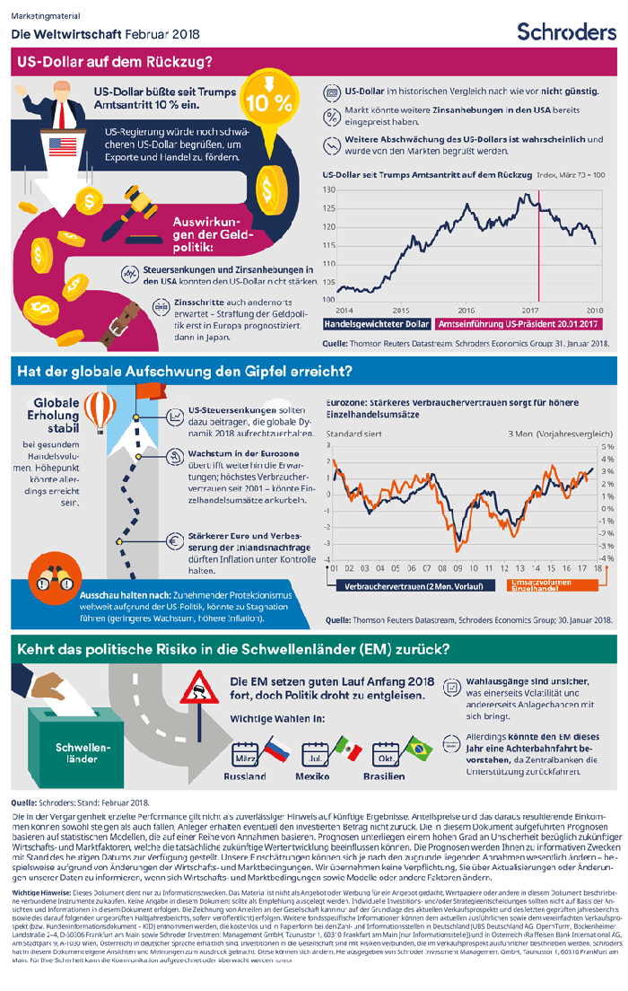 Die hierin geäußerten Ansichten und Meinungen stellen nicht notwendigerweise die in anderen Mitteilungen, Strategien oder Fonds von Schroders oder anderen Marktteilnehmern ausgedrückten oder aufgeführten Ansichten dar. Der Beitrag wurde am 27.02.18 auch auf schroders.com veröffentlicht.