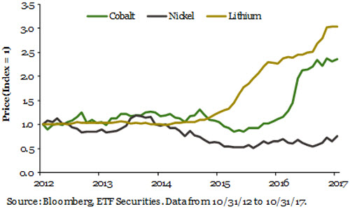 Solche Rohstoffe sind unter anderem Lithium und Kobalt, die beide für die Batterieherstellung unerlässlich sind. Bereits 2017 erfuhren diese beiden Rohstoffe Preiserhöhungen.
