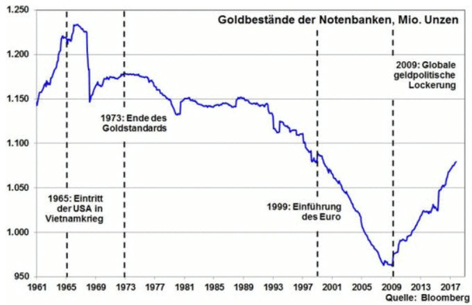 Die Notenbanken nehmen aus geld- wie aus finanzpolitischen Erwägungen heraus Einfluss auf den Goldpreis. Dieser Ansicht ist Robert Halver, Leiter der Kapitalmarktanalyse der Baader Bank. Sie stünden „wie Bud Spencer in seinem Film ‚Sie nannten ihn Plattfuß‘ auf der Bremse“, um ihn künstlich niedrig zu halten, so Halver.