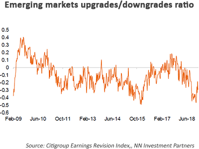 We continue to believe that the current environment is good for EM equities. We appreciate that economic growth data have remained weak (our own EM growth momentum indicator is still close to its multi-year trough), but we also see that EM earnings momentum has started to recover (see graph).