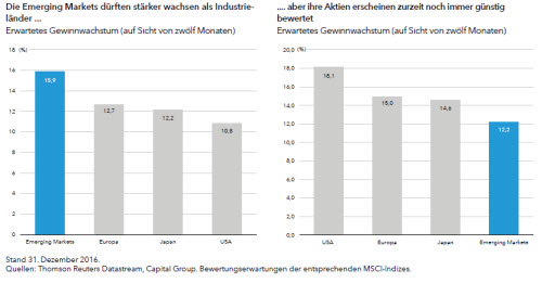 Emerging-Market-Anleihen, -Aktien und -Währungen waren in den letzten Monaten volatil. Sie gerieten nach der Wahl Donald Trumps im November unter Druck. Wegen seiner im Wahlkampf in Aussicht gestellten Handelspolitik und der wachsenden politischen Unsicherheit fordern Investoren für Emerging-Market-Papiere höhere Risikoprämien. Auch die Dollaraufwertung durch Trumps Pläne für eine prozyklische Fiskalpolitik sorgte für Gegenwind.