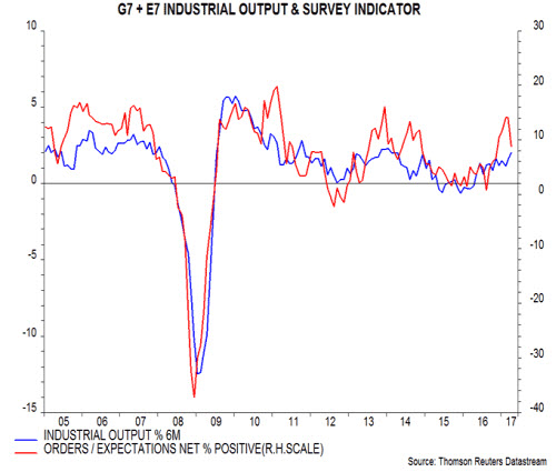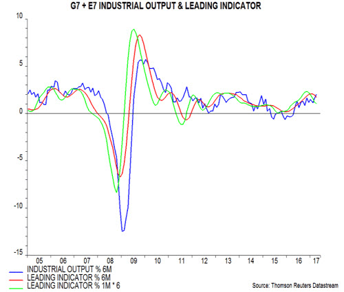 The view here since late 2016 has been that global economic momentum would slow from a peak in spring 2017. The latest monetary information suggests a renewed acceleration from late 2017, although this requires additional data confirmation.