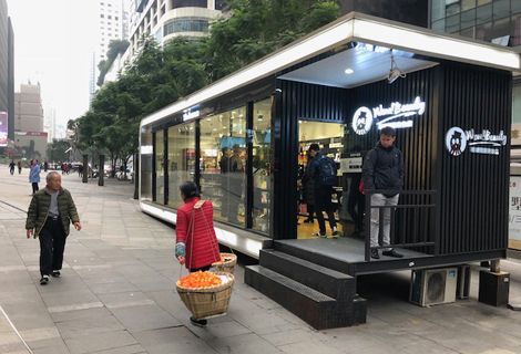 Another example, as shown in the image below, was a ‘semi-automated’ (one employee) concept store outside a mall in Chongqing, a major city in South West China.
