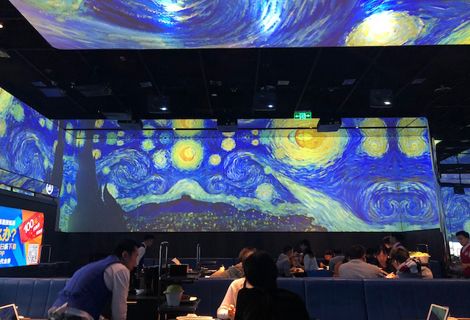 The company has taken the traditional hotpot cuisine concept and given it a modern twist, with robots helping to deliver plates, extremely high levels of customer service and some fantastic dining room settings. Animations of solar systems and paintings – including The Starry Night by Van Gogh – were projected onto the walls and ceilings of our restaurant: