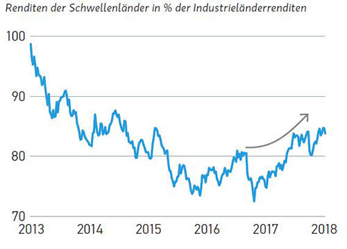 Aufgrund der verbesserten Weltwirtschaft nähern sich Schwellenländer den Industrieländern. Haupttreiber sind angemessene Bewertungen und Risikoprämien in Verbindung mit einer stabilen Inflation.