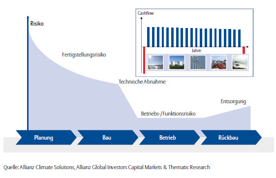 Projekt erneuerbare Energien: Schematisches Cashflow- und Risiko-Profil