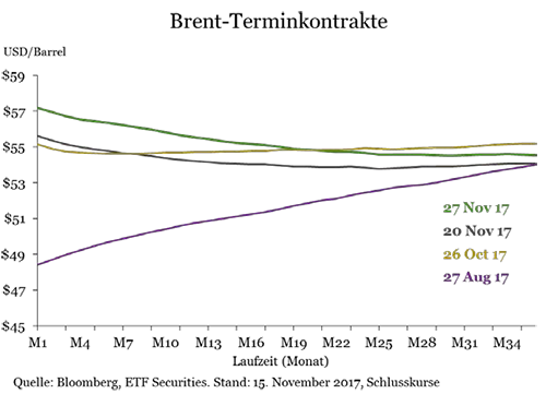 Vor einem Jahr prognostizierten zahlreiche Beobachter, dass die Strategie der OPEC darauf abzielte, das Contango der Futures-Kurve in eine Backwardation umzukehren. Ihrer Argumentation zufolge lieferte das Contango den US- amerikanischen Produzenten von Schieferöl einen Anreiz, trotz der schwachen Preise am Spotmarkt weiter zu produzieren, da die Aussicht auf höhere Preise in der Zukunft es attraktiv erscheinen ließ, das Öl einzulagern und zu einem späteren Zeitpunkt zu verkaufen. Die Folge wäre ein kontinuierlicher Anstieg der Bestände. Nun befindet sich die Kurve in einer Backwardation.