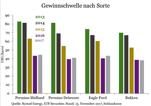 Der Abbau der Bestände dürfte allerdings nicht viel länger anhalten. Die aktuellen Preise lassen einen deutlichen Anstieg der US-Produktion erwarten. Die US-amerikanischen Produzenten von Schieferöl erreichen schon bei ca. 40 USD/Barrel die Gewinnschwelle. Bei einem aktuellen WTI- Preis von 55 USD/Barrel besteht also noch reichlich Spielraum für eine rentable Produktion, und wir erwarten eine erhebliche Ausweitung der Produktion.