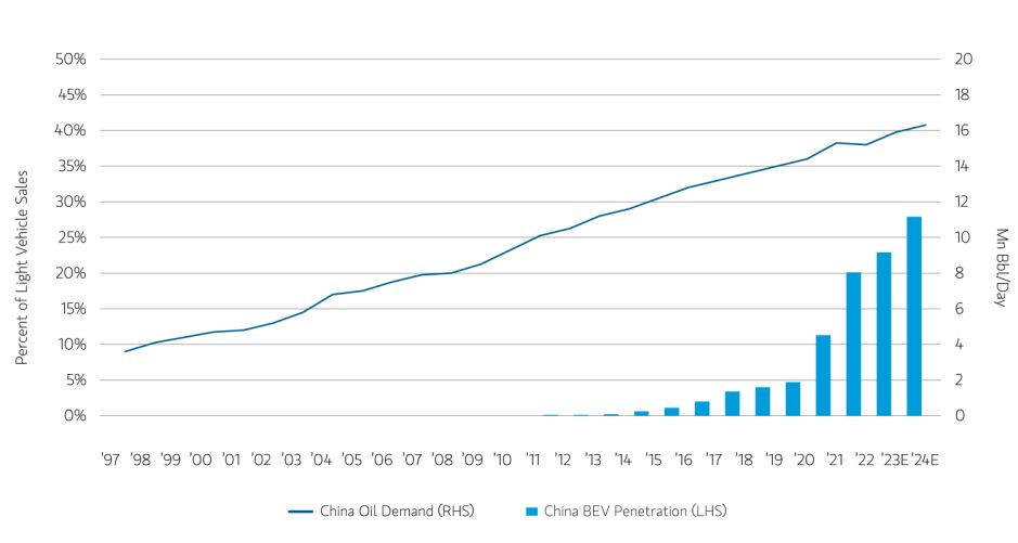 Chinese oil demand has continued to increase despite rapid electric vehicle sales growth