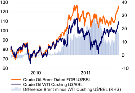 Insgesamt sank die Erdölnachfrage in den OECD-Ländern im vergangenen Jahr und dürfte in diesem Jahr stagnieren. „Am spürbarsten war der Rückgang in den USA und Europa, wo die Nachfrage 2011 um schätzungsweise 1,8 bzw. 1,9 Prozent nachließ“, erklärt Straetmans. Es werde aber erwartet, dass sich zumindest die US-Nachfrage in diesem Jahr erholen werde. In Europa sei dies aufgrund der Rezession und der Sparmaßnahmen eher nicht der Fall.
