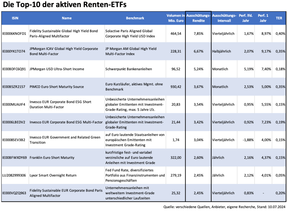 Für Anleger, die auf die Kosten schauen und trotzdem aktives Management im Rentenportfolio haben wollen, können aktiv gemanagte Renten-ETFs eine Alternative sein. Ein wesentlicher Unterschied dieser Produkte gegenüber rein passiven ETFs ist, dass bei aktiv gemanagten Renten-ETFs ein Fondsmanagement die Möglichkeit hat, schnell auf Marktveränderungen zu reagieren und Anpassungen im Portfolio vorzunehmen, um Chancen zu nutzen und Risiken zu minimieren. In Zeiten wirtschaftlicher Unsicherheit oder bei Zinsschwankungen kann diese Agilität entscheidend sein. Aktive Manager können durch eine gezielte Auswahl von Anleihen und Timing-Strategien potenzielle Renditen maximieren und Verluste minimieren. Zudem können einige aktiv gemanagte Renten-ETFs Zugang zu spezialisierten Anleihenmärkten und Anlagechancen bieten, die in passiven Indexfonds nicht vertreten sind. Dazu gehören beispielsweise Hochzinsanleihen (High Yield), Schwellenländeranleihen oder spezielle Sektoren wie Unternehmensanleihen bestimmter Branchen. Durch diese Diversifikation und die gezielte Auswahl können aktive Fondsmanager das Portfolio besser an die individuellen Anlageziele und Risikoprofile der Anleger anpassen. Ein weiterer Punkt: Während passive Produkte darauf abzielen, die Performance eines Index nachzubilden, streben aktiv gemanagte Renten-ETFs danach, den Markt zu schlagen. Durch die aktive Verwaltung und die Nutzung von Marktineffizienzen können Fondsmanager eine höhere Rendite erzielen als ein eventuell vorliegender Benchmark-Index. Dies ist insbesondere in Phasen niedriger Zinsen und hoher Volatilität ein entscheidendes Plus.
