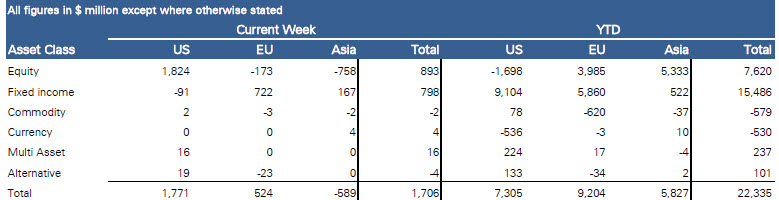 Ebenfalls auffällig: Alle drei großen Anbieter konnten in der Berichtswoche insgesamt Mittelzuflüsse verzeichnen, während sie in der Woche zuvor noch deutliche Abflüsse hinnehmen mussten.