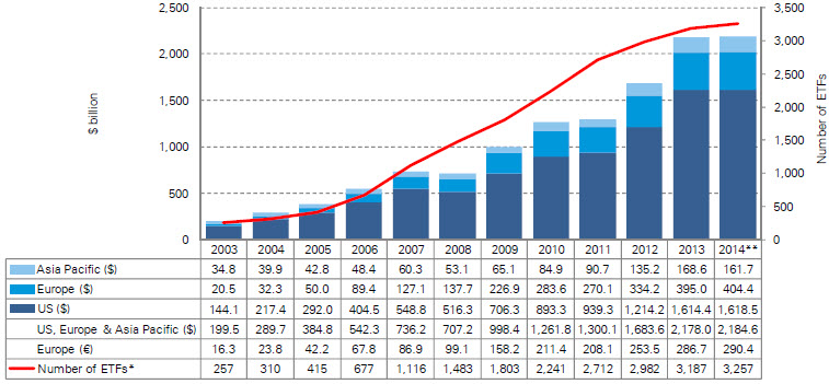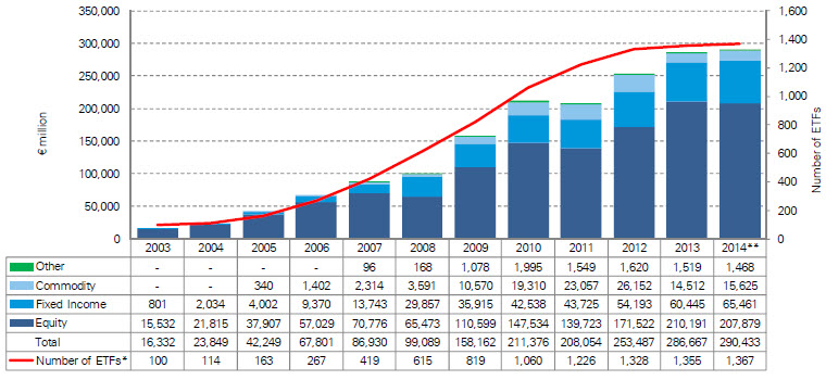 Exchange Traded Funds (ETFs) auf europäische Indizes verwalten per Mitte März 2014 ein Vermögen von 404,4 Milliarden US-Dollar. Das sind 9,4 Milliarden US-Dollar mehr als Ende 2013. Besonders Rentenprodukte aus der EU ziehen Anleger an. Sie sammelten im laufenden Jahr bisher rund 5,9 Milliarden US-Dollar ein. Aktien-ETFs kommen auf ein Plus von knapp vier Milliarden. In der Woche vom 10. bis 14. März büßten diese jedoch ein und verloren 173 Millionen US-Dollar, während Renten-ETFs 722 Millionen US-Dollar einsammelten. Auch global sind Passivprodukte aus dem Anleihesegment auf dem Vormarsch: Ihnen flossen im laufenden Jahr rund 15,5 Milliarden US-Dollar zu. Aktien-ETFs konnten weltweit 7,6 Milliarden US-Dollar einsammeln. In der Berichtswoche vom 10. bis 14. März waren Aktien-ETFs jedoch beliebter. Sie sammelten rund um den Globus 893 Millionen US-Dollar ein und damit 95 Millionen US-Dollar mehr als Rentenprodukte.
