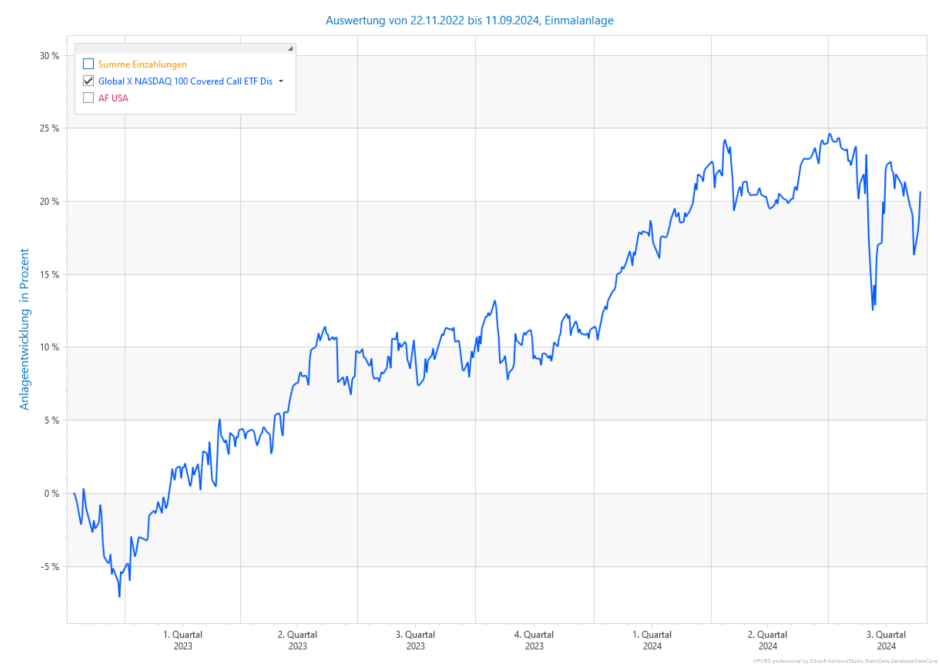 Durch die zusätzliche Einnahmequelle aus den Optionsprämien können Covered Call Strategien die Auswirkungen von Kursrückgängen abfedern. Ein wesentlicher Nachteil der Covered-Call-Strategie ist, dass das Aufwärtspotenzial des Portfolios begrenzt ist. Steigt der Nasdaq-100-Index stark an, sind die Gewinne aus den Call-Optionen begrenzt, da der Fonds die Aktien unter Umständen zum vereinbarten Ausübungspreis verkaufen muss. Die Strategie kann auch weniger effektiv sein, wenn die Märkte sehr volatil sind. Hohe Volatilität kann zwar zu höheren Optionsprämien führen, aber auch das Risiko von Kursverlusten erhöhen. Daher funktionieren Covered Call Strategien am besten in volatilen oder seitwärts tendierenden Märkten und nicht in starken Hausse- oder Baissemärkten.